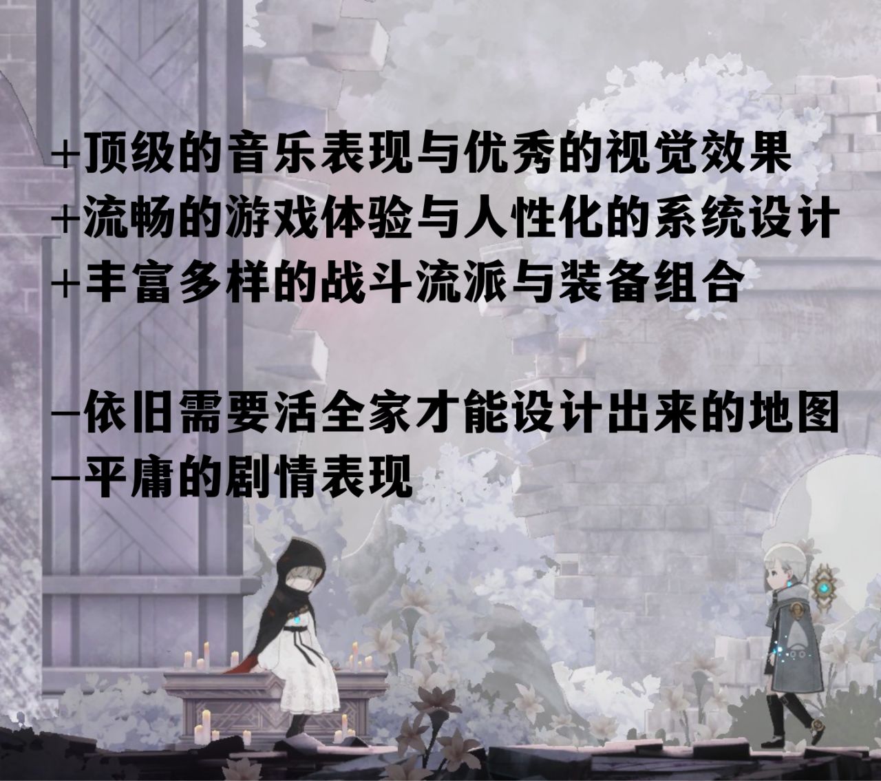 尽管如此,本作凭借其顶级的音乐,优秀的画面以及友好的上手难度,依旧能够在类银河城中占有一席之地,是一款相当值得一试的佳作。