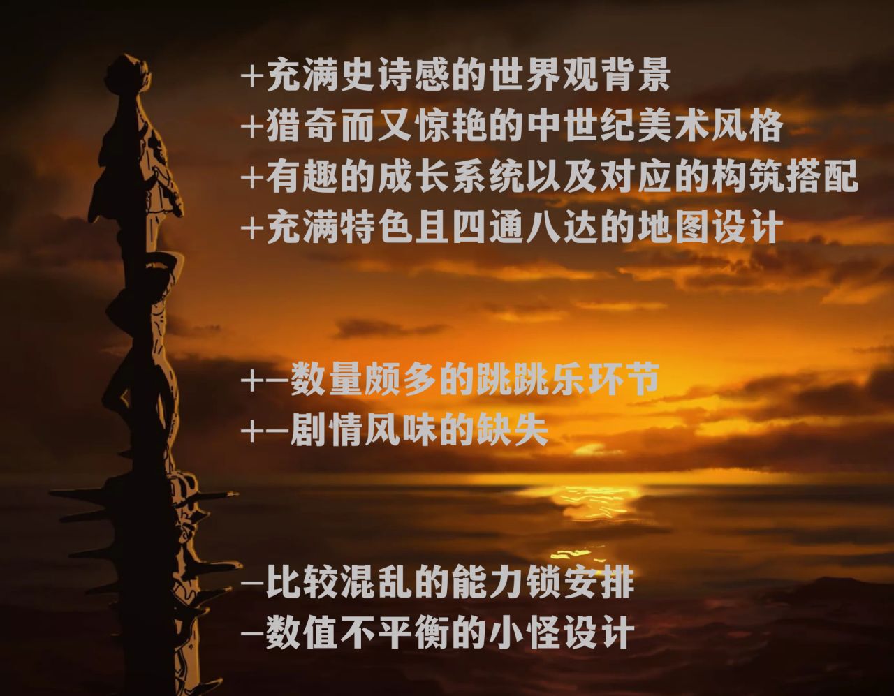 争议较大的类银河城。就以我个人的体验来说,虽然本作中途有几个差点让我破防的地方,但是总体玩下来还是十分值得的。